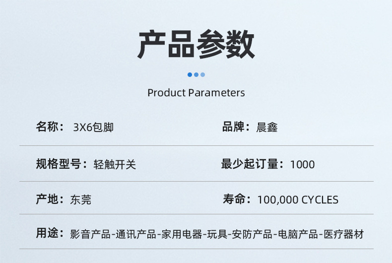 本文标签: # 3x6包脚轻触开关 # 正按贴片按键开关