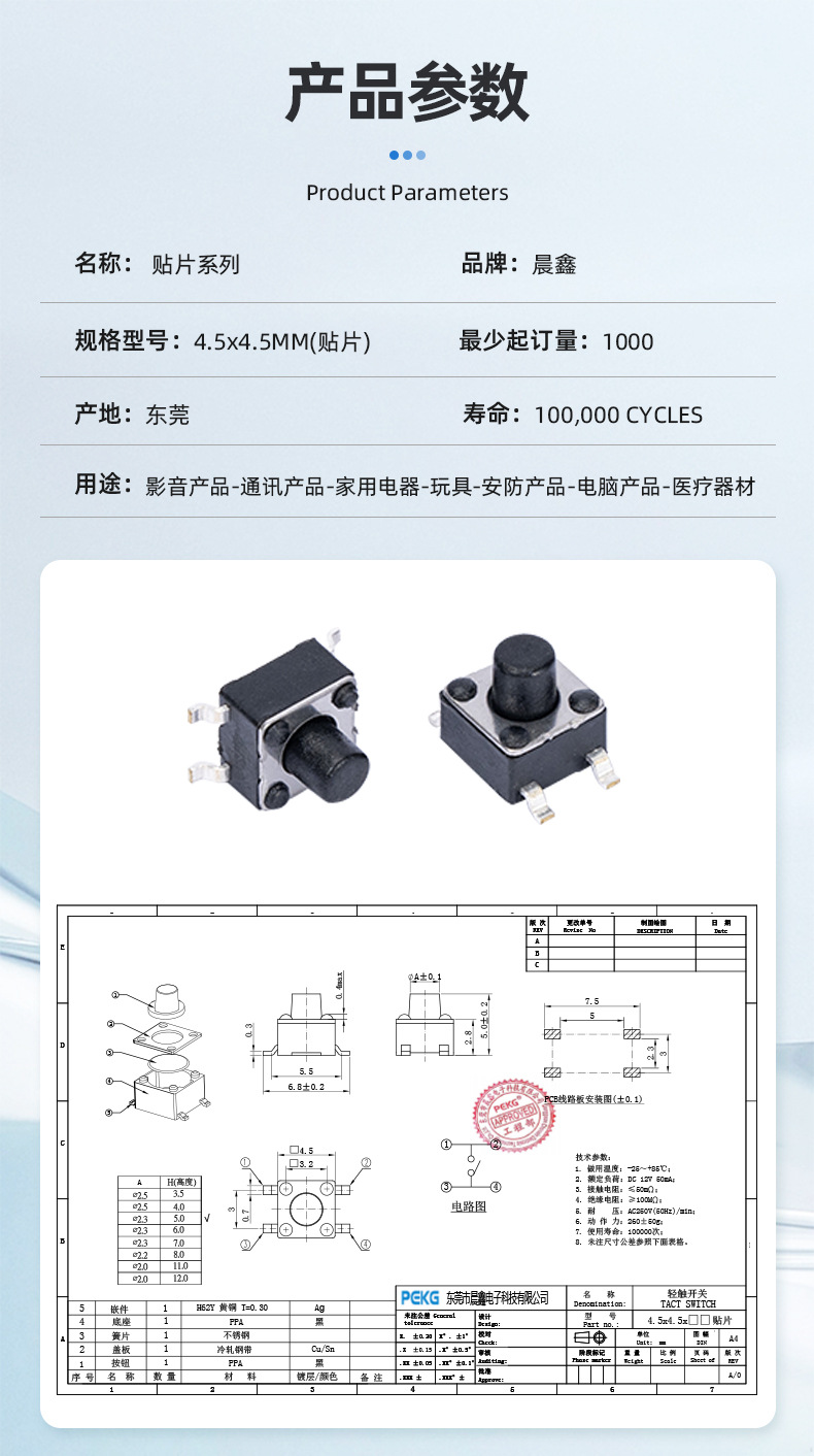 本文标签: # 4.5x4.5 贴片轻触开关